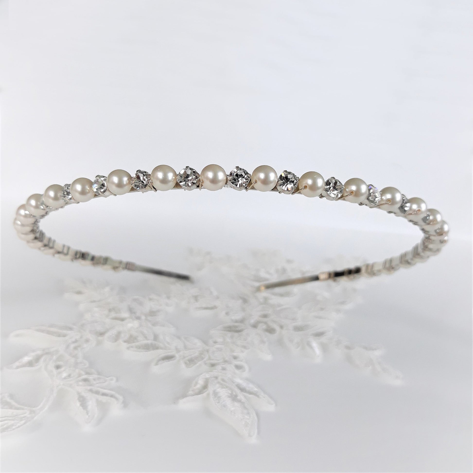 A simple headband perfect for both Brides and Bridesmaids. 6mm Austrian pearls interspersed with small rhinestones create this classis design. After your wedding why not wear it to add style and finesse to your evening or everyday outfit.